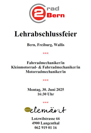 Wir gratulieren den freischgebackenen Zweirädlerinnen und Zweirädlern von Herzen zum erfolgreichen Lehrabschluss und wünschen viel Erfolg und guetes Gelingen für die Zukunft.